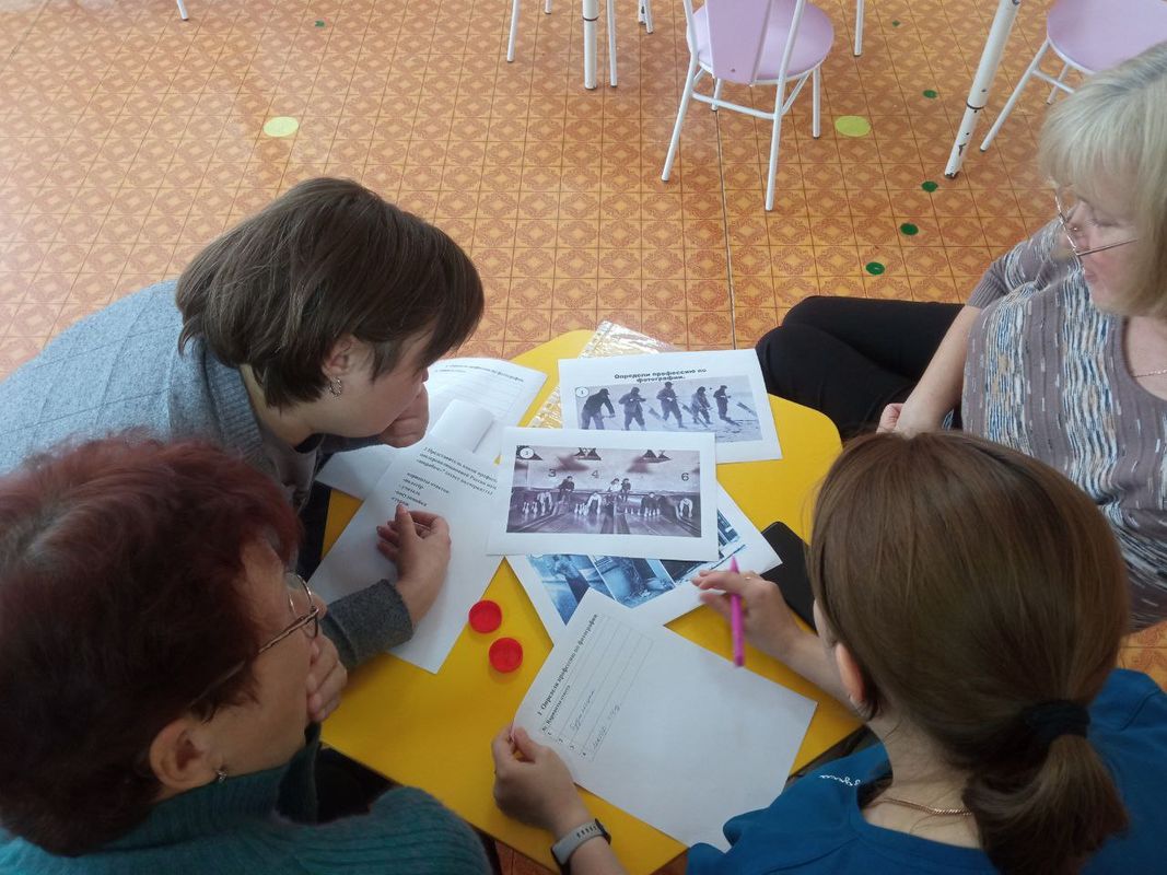 Старший воспитатель предложила педагогам , разделившись на две команды ,пройти квест состоящий из трех станций («Профессии прошлого», «Редкие профессии современного мира», «Знатоки ранней профориентации»), в ходе которого воспитатели прокачали свои знания по использованию современных педагогических технологий, показали знание возрастных задач по теме ранней профориентации , размышляли о том какие умения необходимо формировать у ребенка дошкольного возраста, чтобы быть успешным в современном обществе. В качестве рефлексии был выбран прием «Чемодан, мясорубка, мусорница»