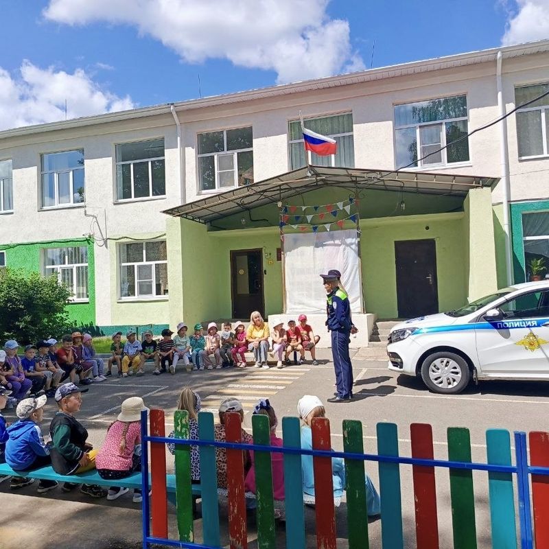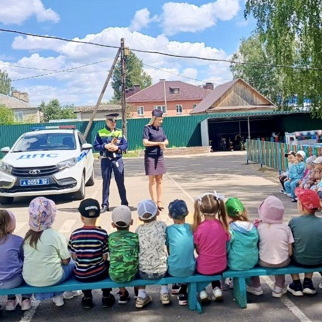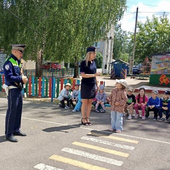 Одной из основных задач летом - это формирование у детей навыков безопасного поведения на улице! Что бы закрепить знания ребят о ПДД, в наш детский сад приехали сотрудники ГАИ. Они рассказали ребятам о значении дорожных знаков, о том, как правильно переходить улицу, и о важности использования светофоров.