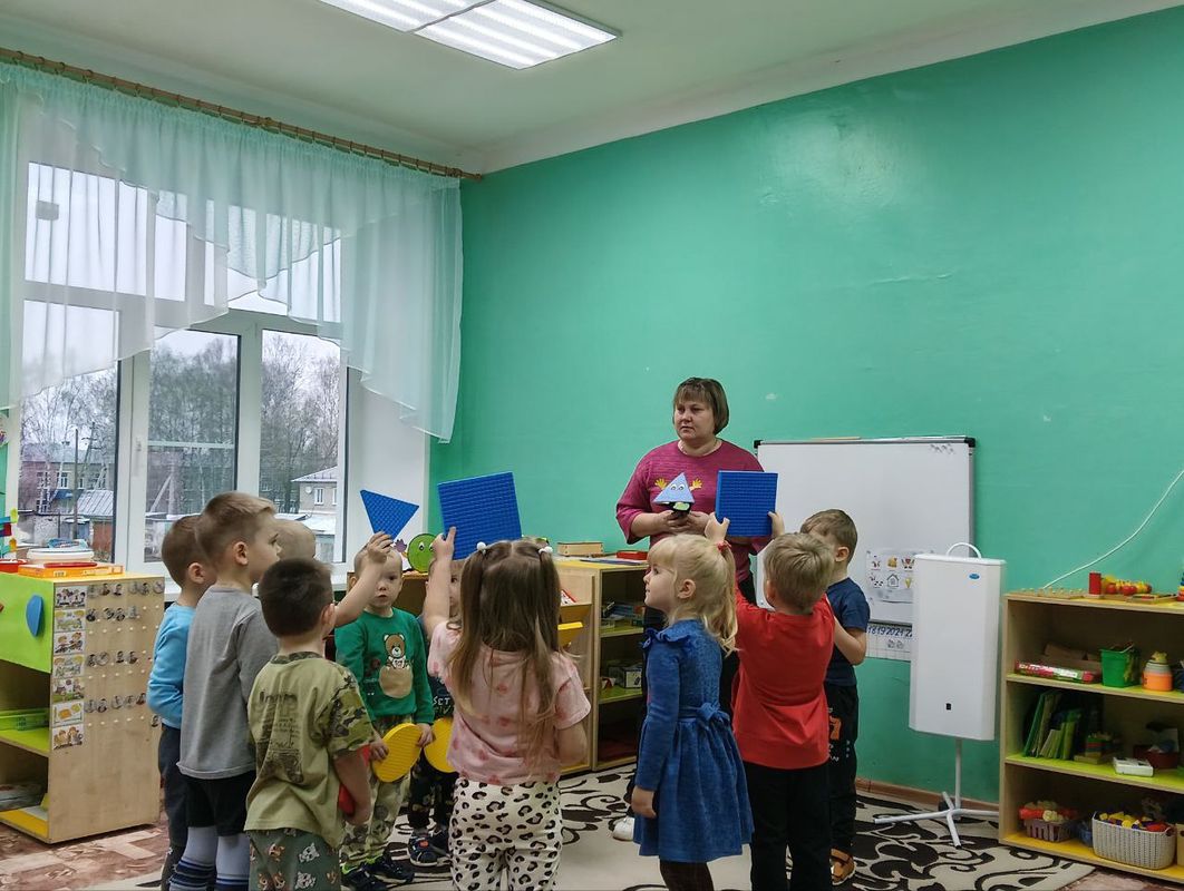 В младшей группе воспитатель Чернего Ю.А. показала, как, используя технологию «Математика без тетрадки», закреплять знания о фигурах.