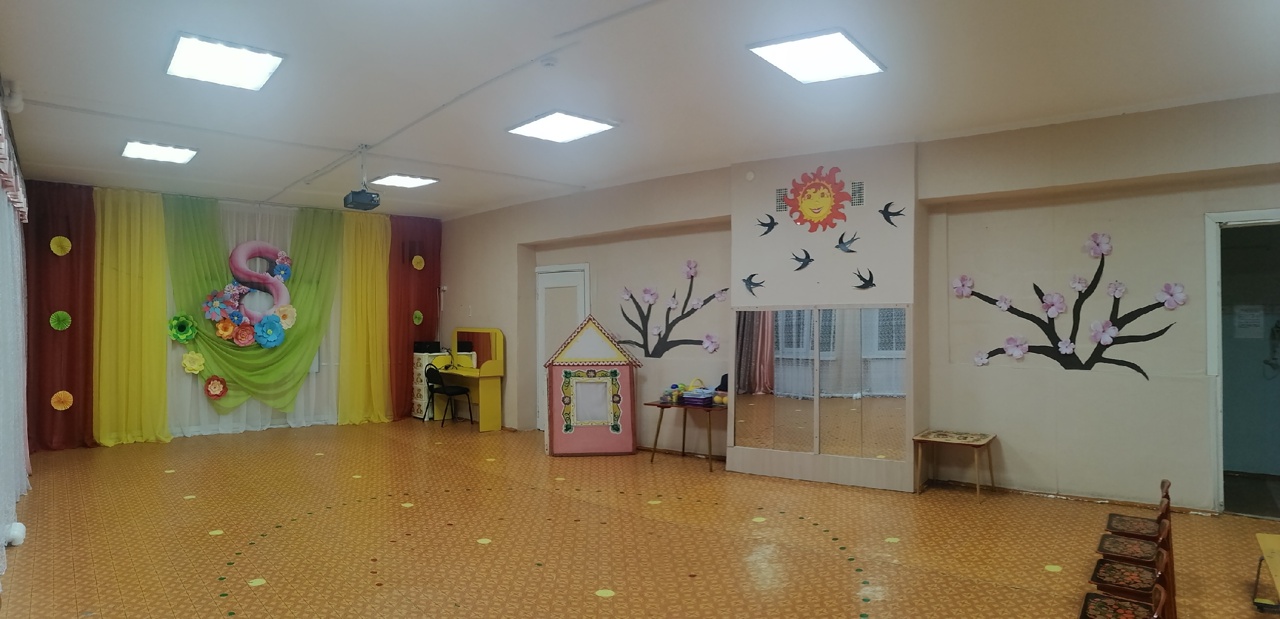 Музыкально-физкультурный зал предназначен для решения задач музыкального и физического воспитания детей дошкольного возраста. Здесь проводятся занятия, досуги, праздники, утренники и развлечения. Зал оборудованы стандартным оборудованием и спортивным инвентарём, соответствующим правилам охраны жизни и здоровья детей, требованиям СанПиН. В соответствии с Паспортом доступности объекта социальной инфраструктуры зал доступен условно (ДУ) для отдельных категорий инвалидов: с нарушением опорно-двигательного аппарата (О), с нарушениями умственного развития (У). |